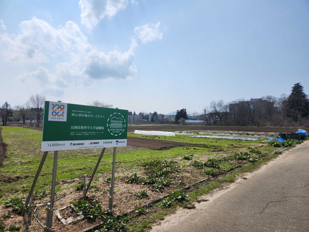 大学前の圃場に看板を設置しました